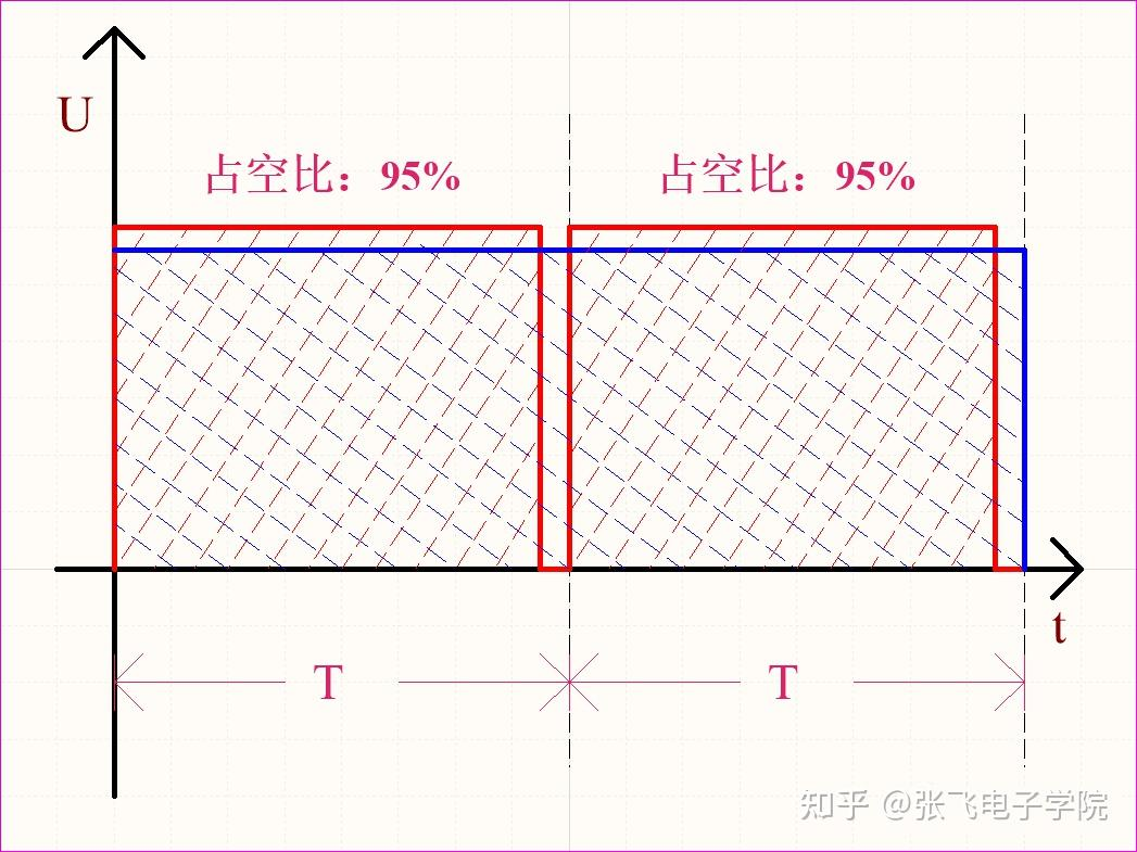 图7为PWM信号等效电压图,其中一个周期内高电平时间定义为占空比D= Ton