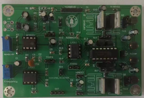 方案2是****课程组提前印制的PCB电路板,分为前级调制电路和后级功率电路两块,需要焊接。学生可以两块组合使用,也可以与方案1组合,例如前级调制电路用面包板搭建,后级采用实验室预制功率电路PCB板。