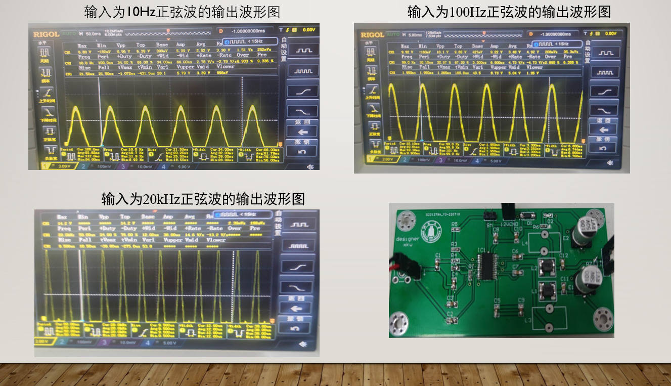 **仪器设备:**信号发生器(固纬AFG-2225),直流稳压电源(DP832A),示波器(普源DS1074),万用表(GDM-8261A),功率分析仪(泰克PA1000);