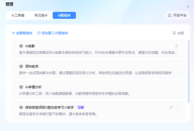 本实验项目由学生、教师以及超****星学习通平台AI助教三方共同交互完成。教师已经提前学习通平台部署了综合实验D类功放助教,学生可以与AI助教互动查阅往届学生的问题积累以及相关知识,如图2所示,具体教学设计与实践进程如表3所示。