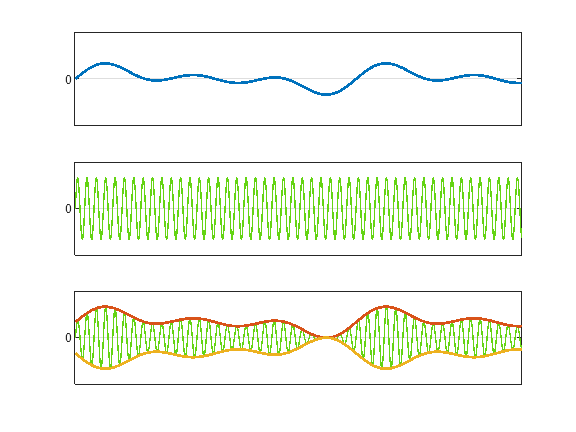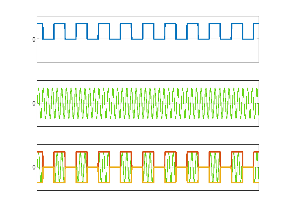 a)高频正弦信号幅度携带信息 b)携带方波音调信号 c)高频方波信号携带方波音调信号