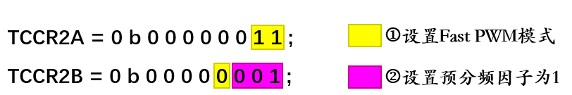 与前述生成高频方波的方式类似,为了提高PWM信号的频率,我们需要对定时器/计数器进行修改。由于定时器/计数器1已用于生成高频方波,而无线广播系统不再使用tone函数,因此这里使用定时器/计数器2,进行如下配置: