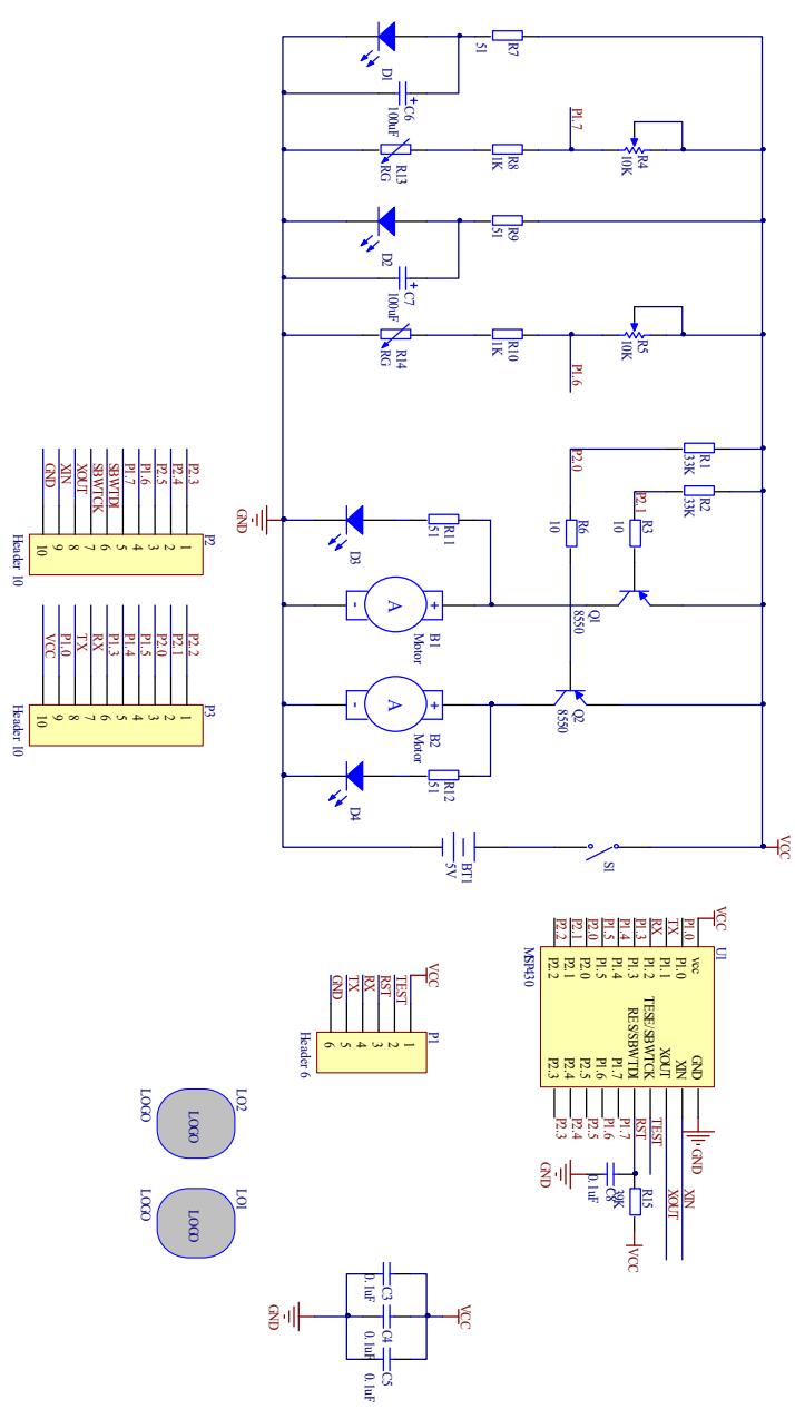 图 2 MSP430 小车电路原理图