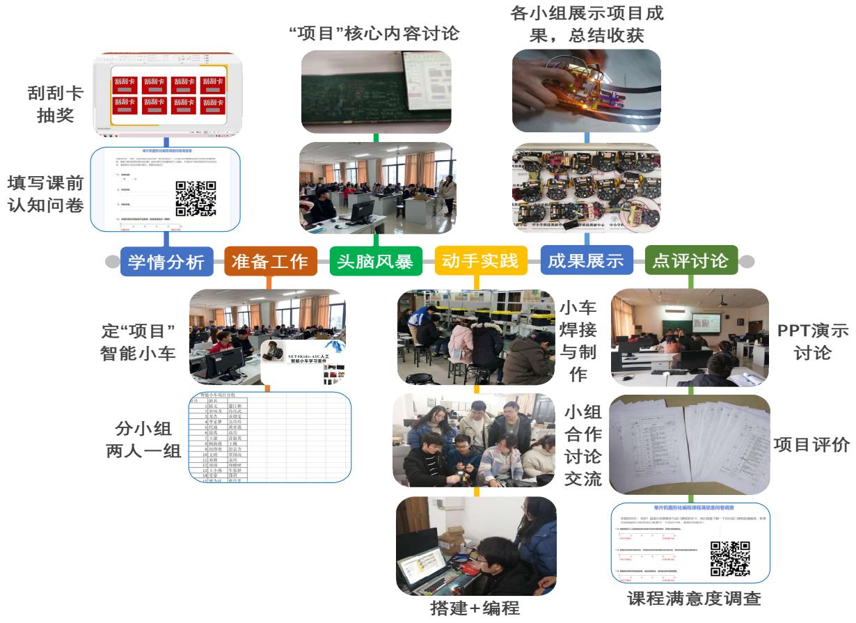第三阶段学生实践反馈和学习活动拓展,根据建立好的评估指标体系和相应的评价表,对学生的项目完成度从设计、操作以及创新等方面做出点评,取长补短。