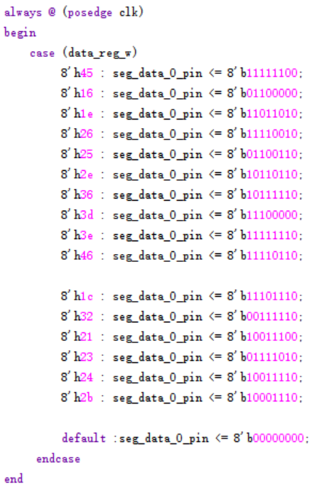 解析PS2的数字按键0~9、a~f关联信息,将关联信息转成段选信息。