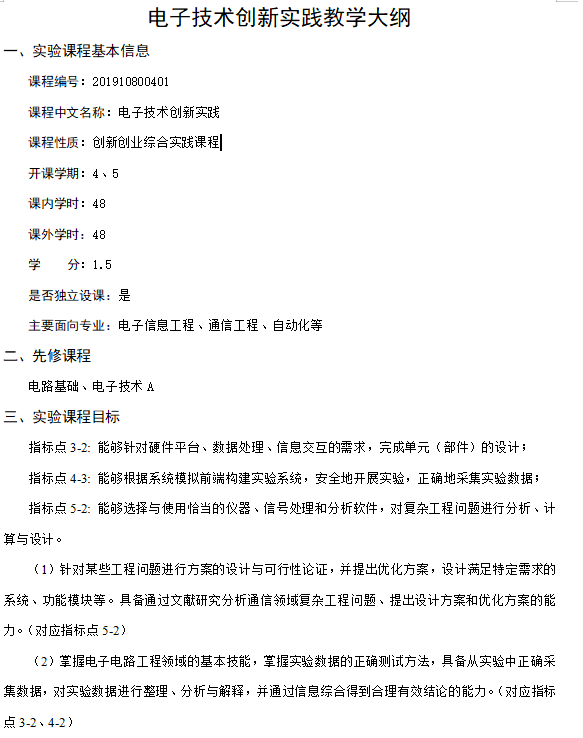 附录A:电子技术创新实践教学大纲