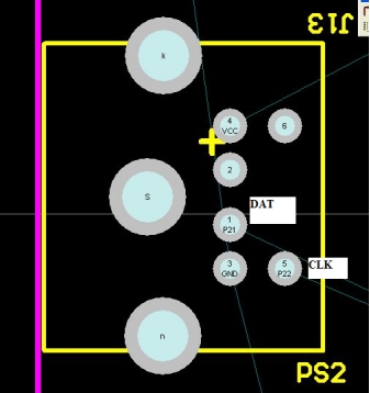 现在主流的PS2接口,具有六脚mini-DIN连接器。PS2 最初由IBM开发,它的连接端口只有四个脚有意义。分别是第1脚DATA(数据脚)、第3脚Ground(电源地)、第4脚+5V(电源脚)和第5脚Clock(时钟脚)。