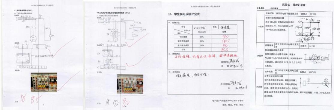 2) 实验质量:能精确完成各电气元件的安装,能在规定范围内完成电气元件的搭建。