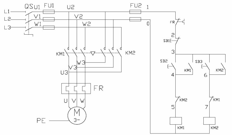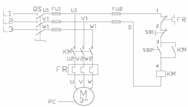其次,三相电源对主电路(电动机)和控制电路(包含交流接触器、行程开关、按钮开关等)及指示灯电路供电。