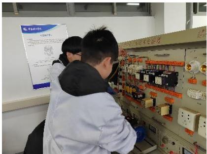 过虚拟仿真软件学习激发低年级学生的学习热情,现场实物实践学生可以实际搭建电动机控制电路,夯实了学生在电工电子技术方面的理论知识学习。在常规的实训手段上,本项目又引入了排故环节,可以让学生完整的体验从电气原理图的基本搭建到实际案例的故障排除的全过程。