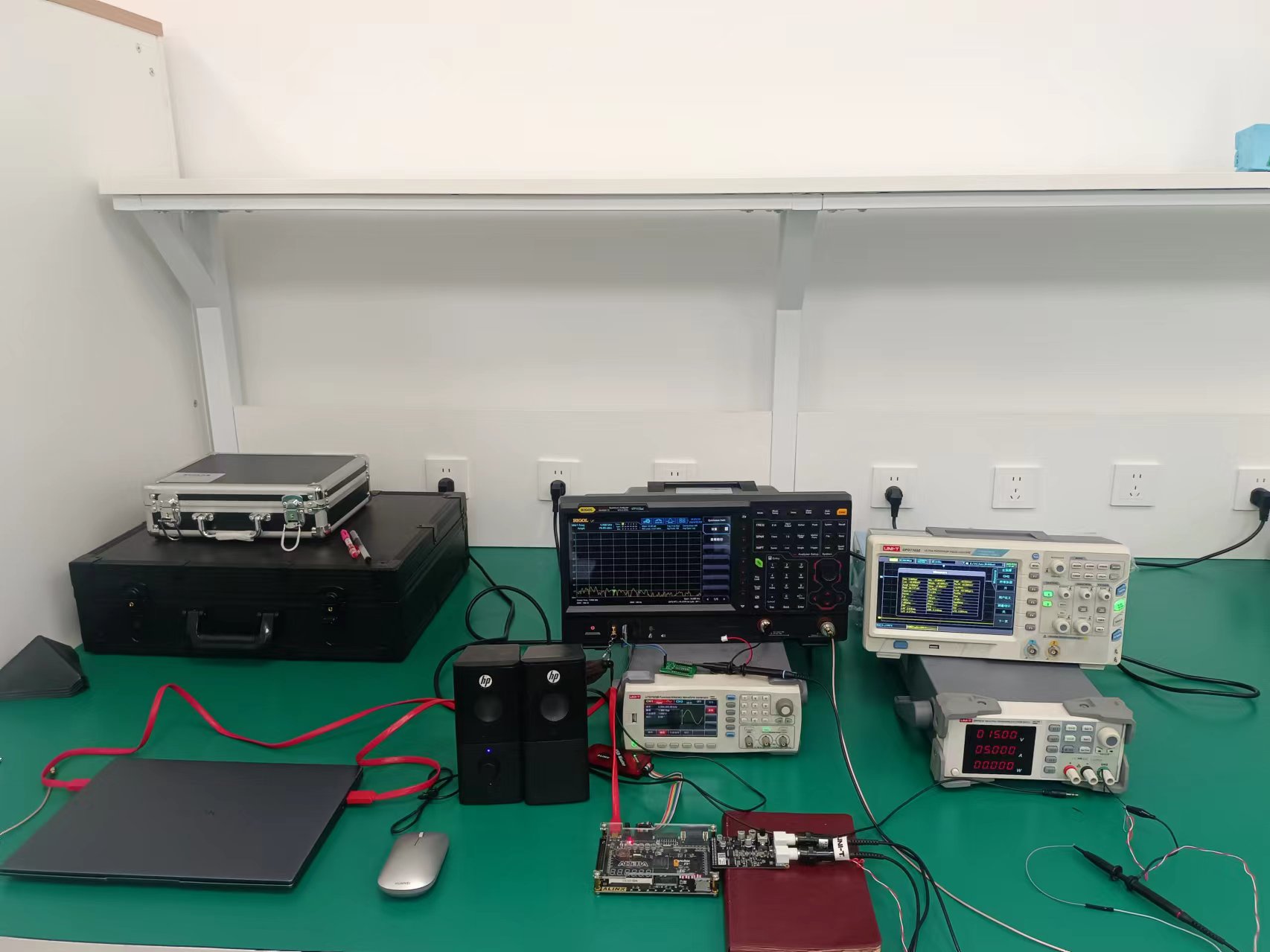 c) 搭建一个包含音频信号源、滤波器、频谱分析仪、喇叭以及电源在内的一个综合实验及测试平台;