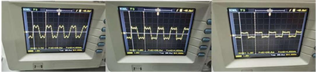 按表4的要求,组合电路,观测占空比为1/2的方波各次谐波合成结果。