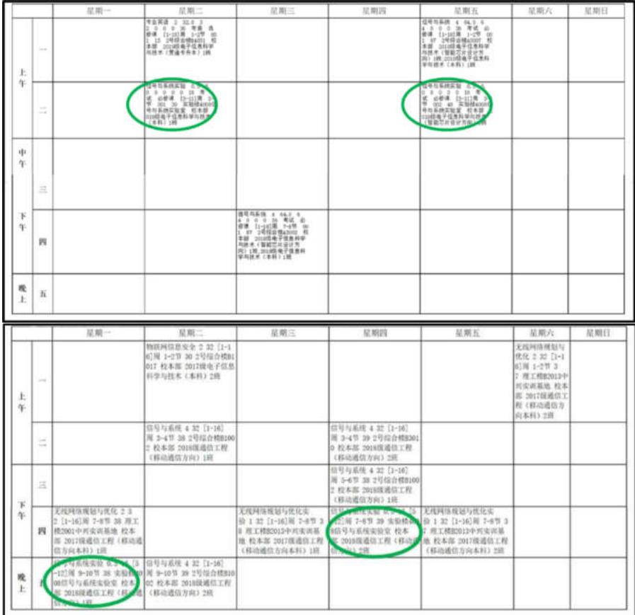 1、教务系统内部分课表: