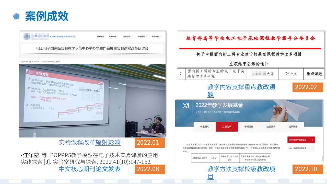 在启发学生综合电路系统的根基是对最基本原理的熟悉和灵活应用的同时,该实验案例的实验任务分难度层次、可扩展进深,借助 BOPPPS 教学方法,让不同学习程度的学生广泛受益:使基础积累扎实的学生有发挥空间,使暂时相关积累欠缺的学生也能逐步进深。