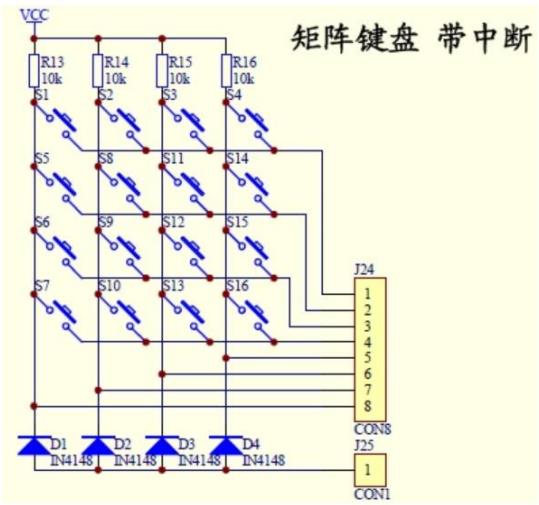 图 5 矩阵键盘电路