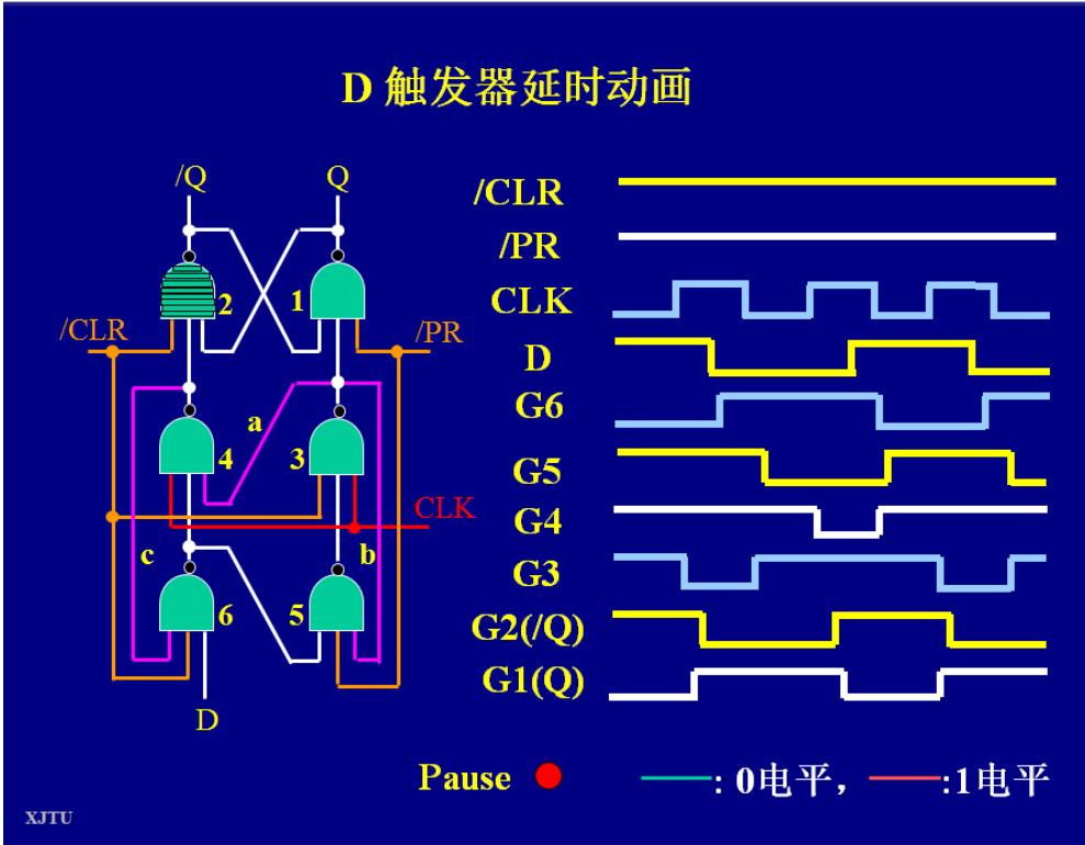 1)给学生简要介绍“缓动D 触发器模型动画”