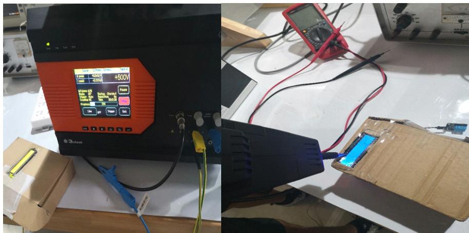7 ) 在 电路设计、 搭建、 调试完成后, 引 导和协助学生利用数字秒表或数字示波器结合变频电源和交流负载, 设计和搭建试验测试环境, 对过流保护性能进行测试。 利用组合式抗扰度检测仪对系统的 电源电路、 电流采样电路、 485 接 口 电路分别施加干扰信号 (浪涌/脉冲群),检验系统的抗干扰能力 。