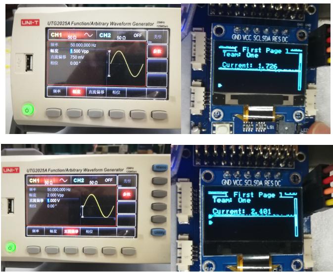 2、通过AD芯片采集一个周波(20ms)的信号,等间隔采样12个点并显示,通过采样数据计算电流有效值,并与实际电流相比较,