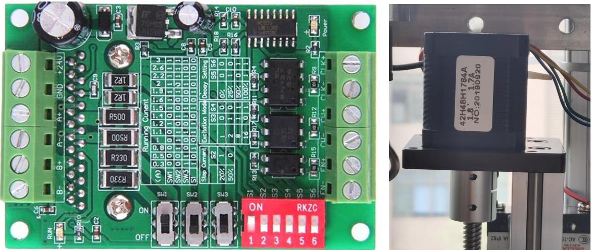 图 7 步进电机驱动器(左)、步进电机(右)