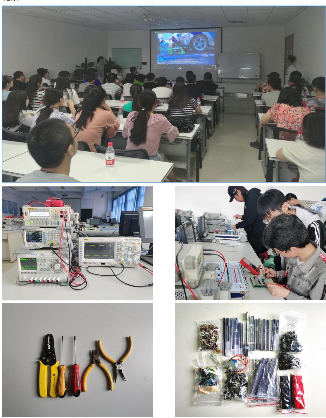 实验设备包括万用表、示波器、信号发生器、焊接套件、五金工具、台钻等。