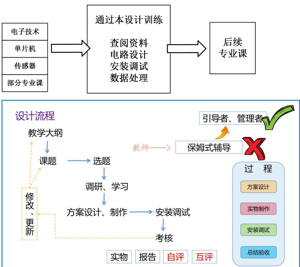 通过对应用的调研学习和实现的过程,引导学生关注应用需求和原理技术之间的联系。培养学生的电子技术设计、电子测量和运动控制系统初步设计能力,根据工程需求选择技术方案的能力,构建测试环境与条件,通过测试与分析对系统问题进行分析、求解、设计、评价的能力,掌握常用仪器、软件和工具的使用方法。