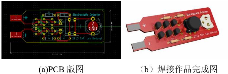 2) 扩展要求:考虑检测电路的成本、便携性、稳定性以及美观性,通过印刷电路板设计软件设计电路原理图、PCB 图,加工制板并焊接电路进行静电检测;