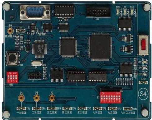 该模块通过 4 位拨码开关来加载不同的固化程序,通过 8 位拨码开关控制哪些谐波参与信号合成,通过 TP8 观测点输出合成波形。