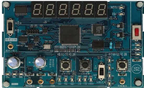 通过调节“信号源与频率计模块”(见图 12)的按键、旋钮,来设置周期信号的类型、占空比、幅度等参数。