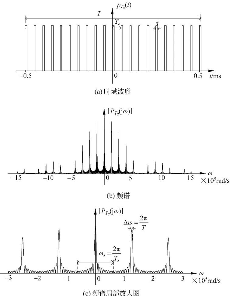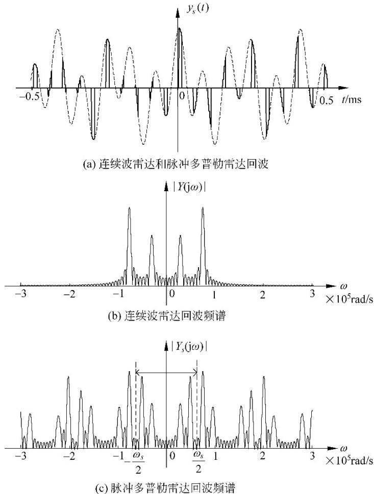 当雷达发射脉冲串时,目标的回波可以视为采用脉冲串 $P _ { T _ { s } } ( t )$ 对式(2)进行了抽样: