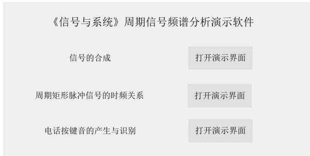 (2)在开展硬件实验前,先利用自研的“《信号与系统》周期信号频谱分析演示软件”完成“信号的合成”、“周期矩形脉冲信号时域参数对频谱的影响”、“电话按键音的时域、频域波形分析”。