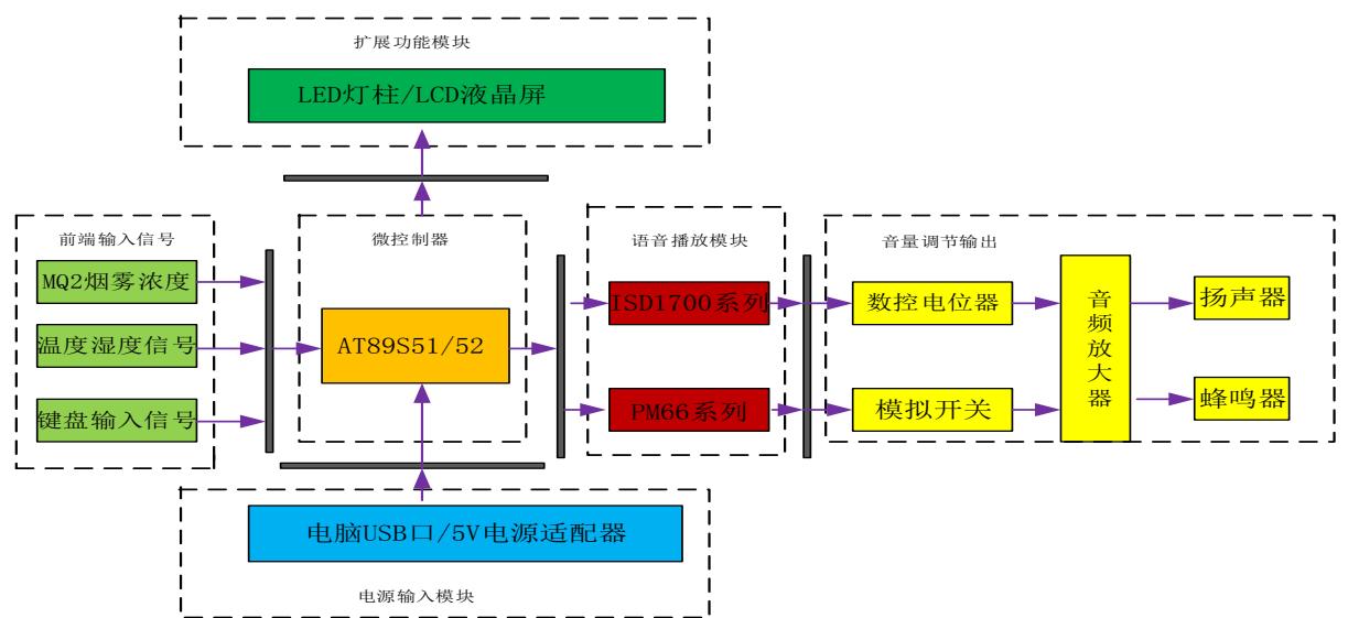 2)方案选择:学生需结合具体应用选择系统方案,例如前端输入模块方案的选择、特别是语音播放模块方案的选择等。