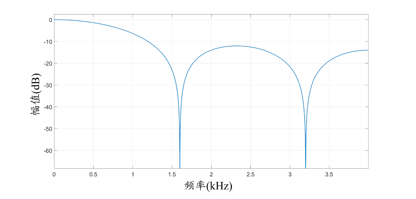 图8 5点滑动滤波器幅频响应理论波形(采样频率:8kHz)