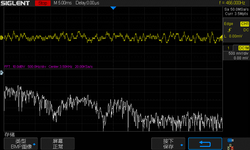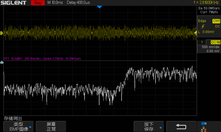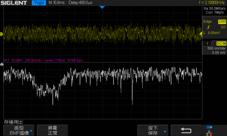 用伪随机二进制序列(PRBS)表示的宽带噪声替代取自ADC的抽样值作为滤波器的输入,滤波后的噪声可通过示波器进行观察。由于PRBS输入的频率成分在全频域是一致的,因此滤波后噪声的频率成分对应的是滤波器的频率响应。利用示波器的FFT功能可观察到滤波器的幅频响应特性。