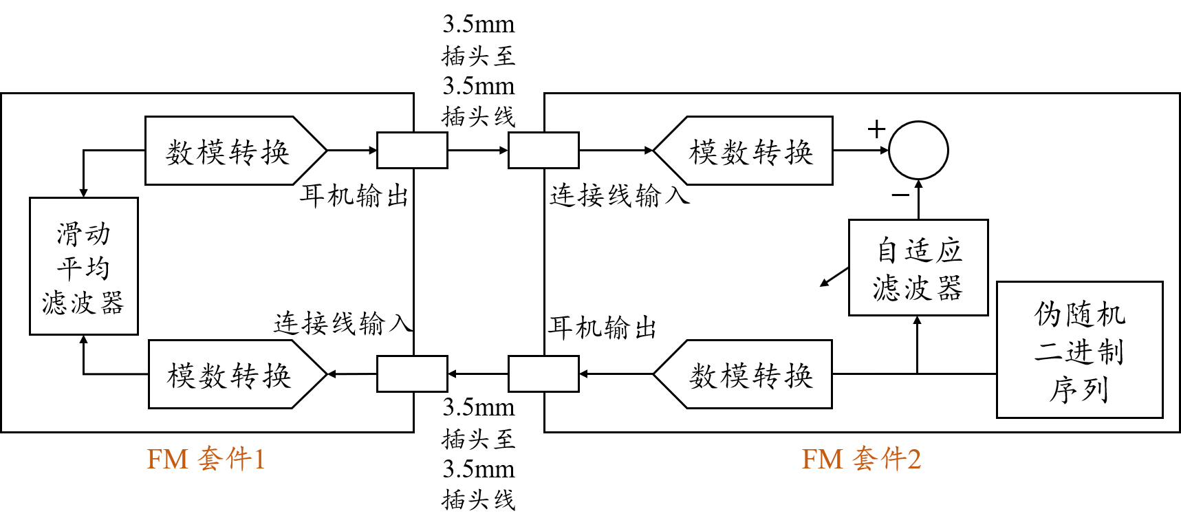 图10 两套开发板测试滑动平均滤波器特性连接框图