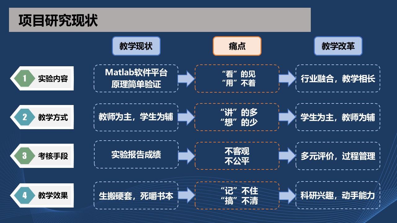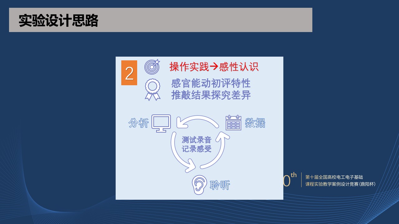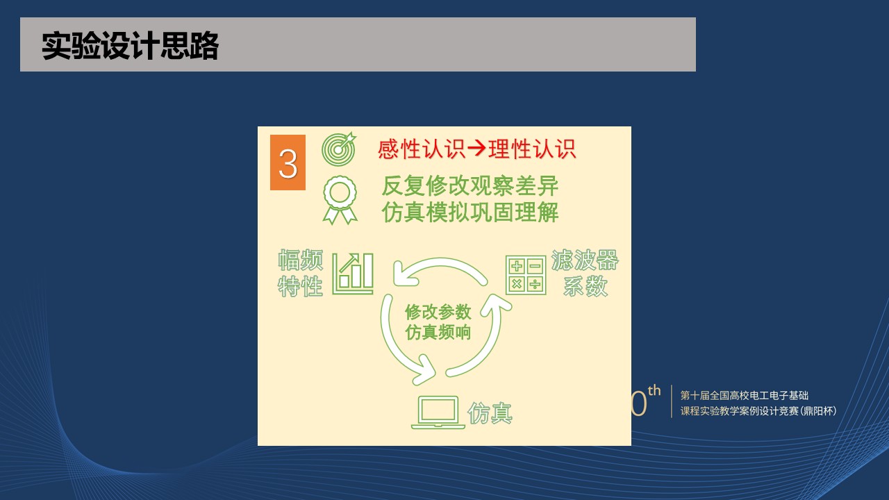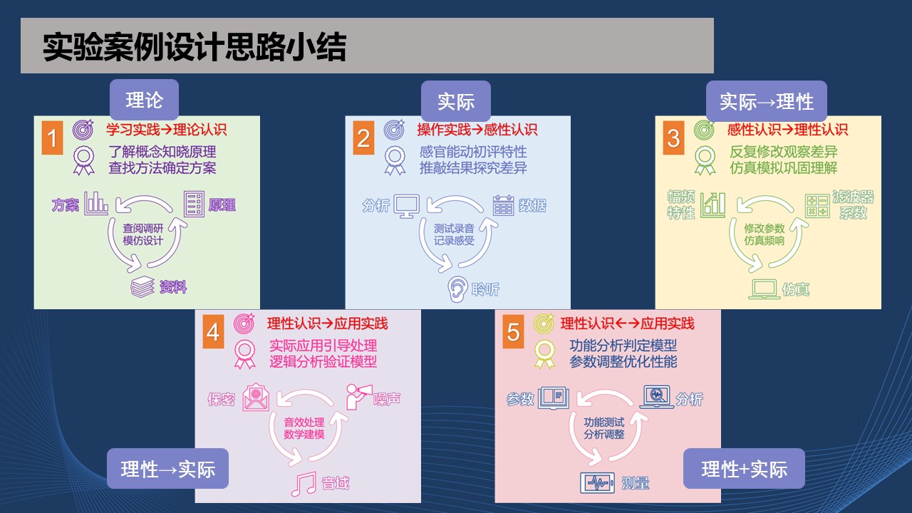 实验整体设计思路将实践和认识紧密结合在一起,遵循从实践到认识,再实践、再认识的科学发展规律,把该实验放到整个哲学体系中去思考,学生从被动做实验转变为主动去做实验,不断的产生思考点。让学生能够从操作实践中产生感性认识,感性认识巩固理性认识,理性认识指导工程实践,工程实践又能反过来修正理性认识。