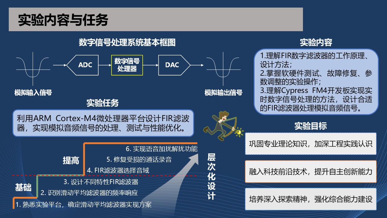 本案例聚焦利用ARM Cortex-M4微控制器设计能够处理音频信号的FIR滤波器,通过软硬件协同的实验平台培养卓越工程师的工程实践创新能力,强调测试—设计—实现—优化的实验设计思路,构建由浅入深的层次化实验内容。
