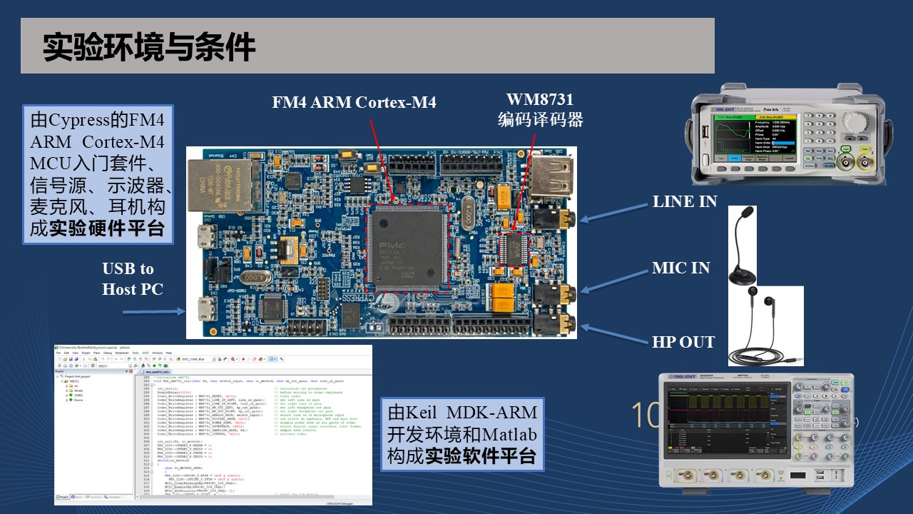 本实验案例所需的口袋实验套件主要包括:Cypress的FM4 ARM Cortex-M4 MCU入门套件、便携式四合一测量仪、麦克风和耳麦。