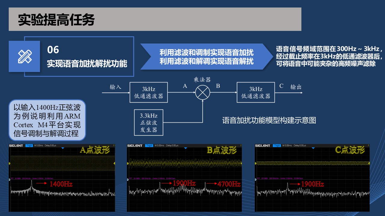 这是一个运用数字信号处理技术解决现实生活和工程实际问题的典型案例,需要运用信号采样、模数信号转换、抗混叠滤波、数字信号处理、FIR滤波、调制与解调、软件仿真、参数设定、程序编译与测试等相关知识与技术方法。并涉及测量仪器精度、硬件与软件协同、应用实践等工程概念与方法。
