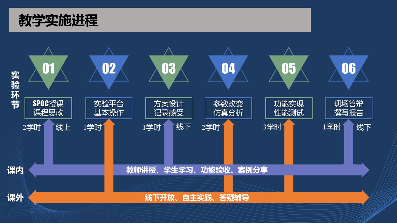根据实验设计与内容规划,本实验案例课内学时4学时,课外学时6学时。其中,课内又分为线上2学时和线下2学时。