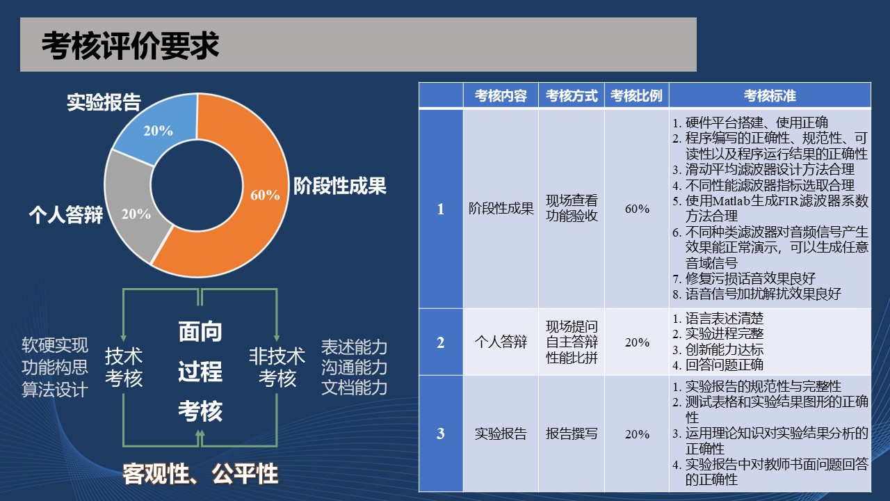 **评定:**首先,每小组成员对项目实施的过程和结果进行详细论述,教师针对项目成果进行现场提问;其次,学生撰写实验报告并提交。教师根据学生回答问题和实验报告的完整性、正确性、创新性,评定最终实验成绩。