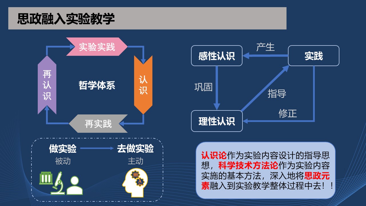 认识论作为实验内容设计的指导思想,科学技术方法论作为实验内容实施的基本方法,深入地将思政元素融入实验教学整个过程中去。