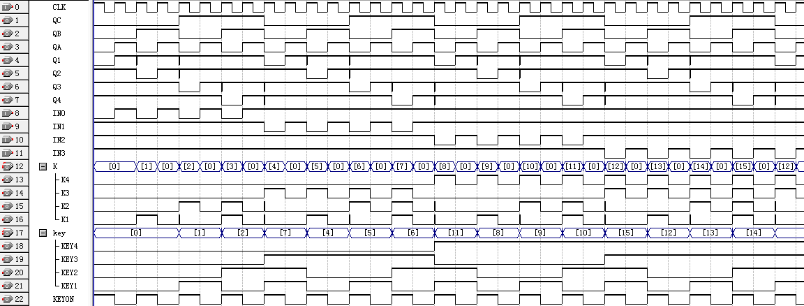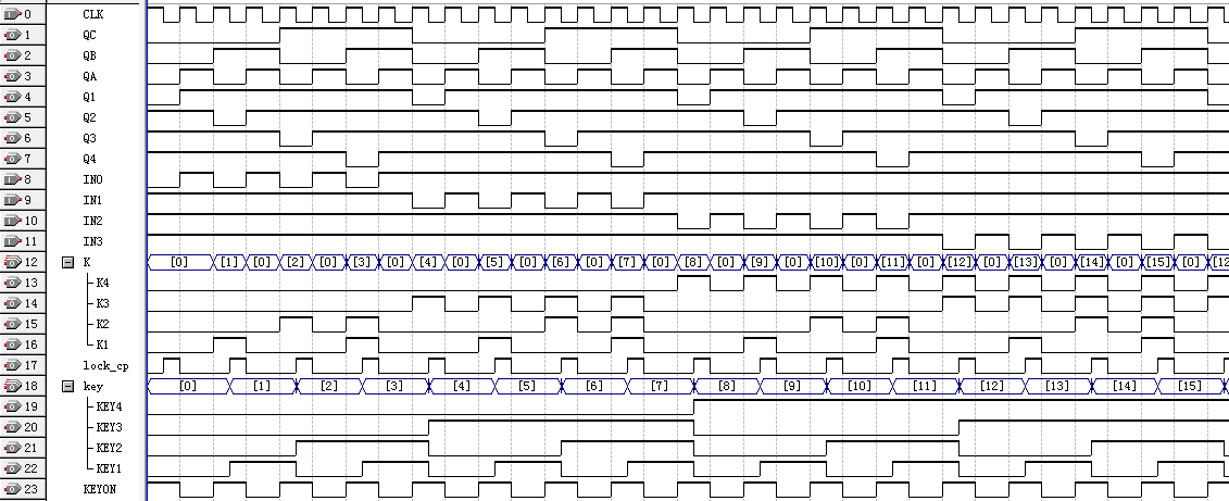从图16中的时序仿真的结果看,锁存器最终输出的键值与扫描所得的初始的键值完全相同。