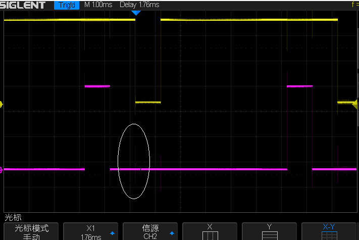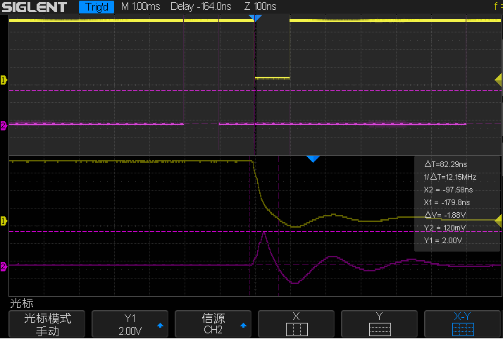 用示波器实测也能证明K2仍有毛刺存在,问题未完全解决。
