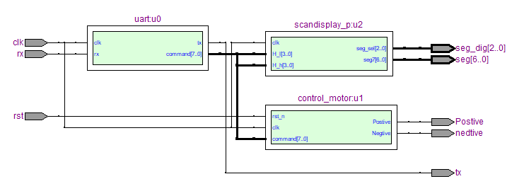 基于FPGA的UART指令控制电机实验的系统层次框图如图1所示。