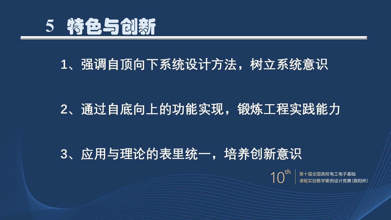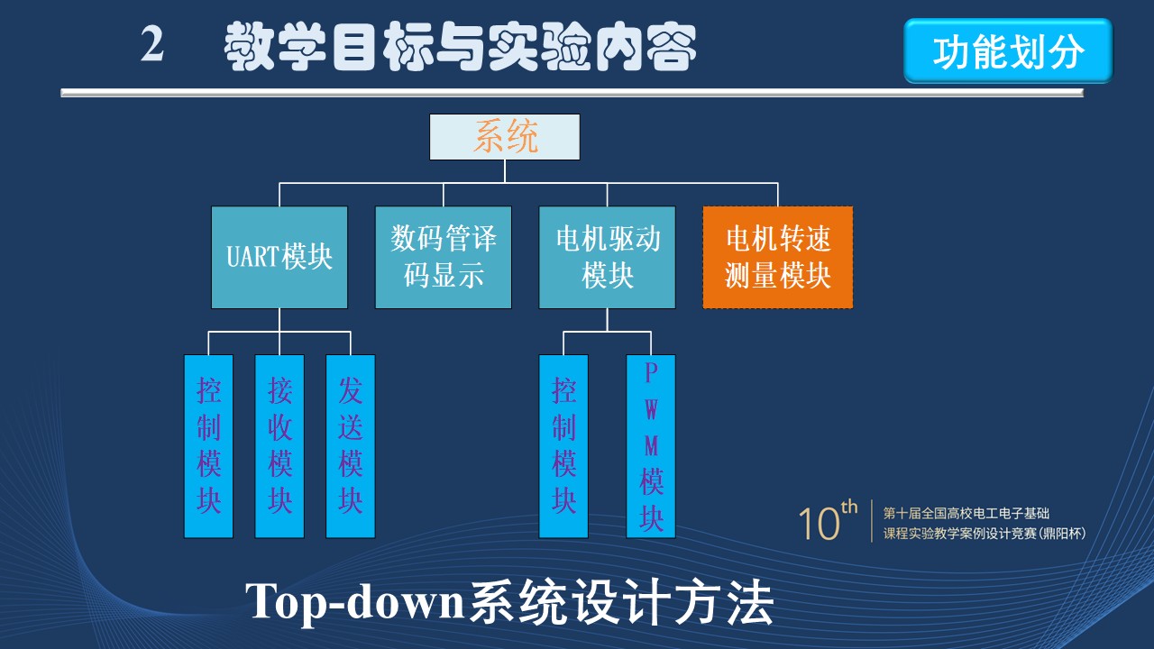 **(1)强调自顶向下系统设计方法,树立系统意识:**从系统整体概念出发,从总体到局部的设计方法,完成单独知识点向多知识点的融合;促进学生学习思维能力的提升,提高应用型人才培养质量。