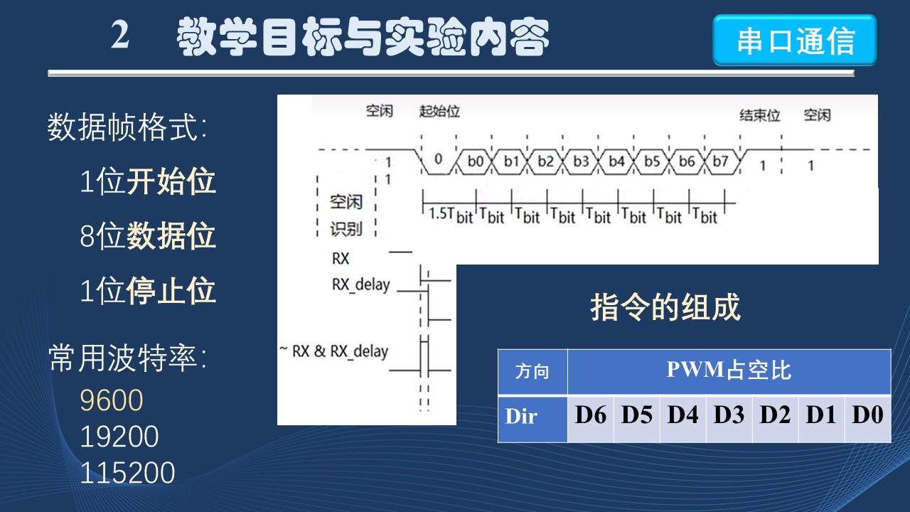 这一阶段的教学主要讲述UART和PWM的原理,以及应用时的注意事项,让学生做到“知其然,更知其所以然”。