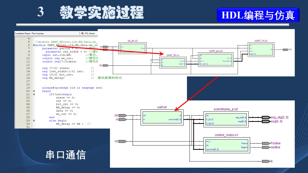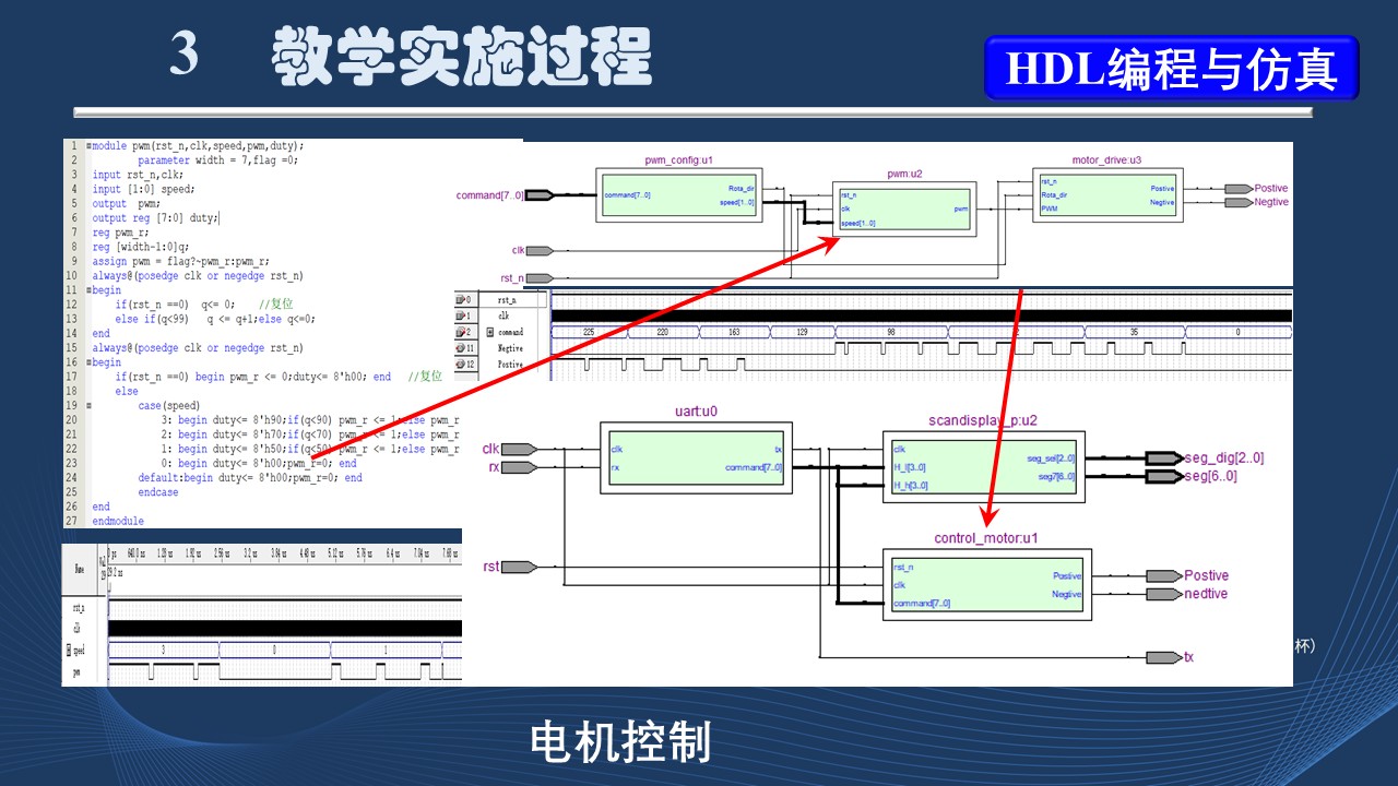 (1)基于FPGA的自顶向下系统设计方法:这是整个设计中的难点,学生可能不知道如何下手,老师在这一环节需要重点引导。