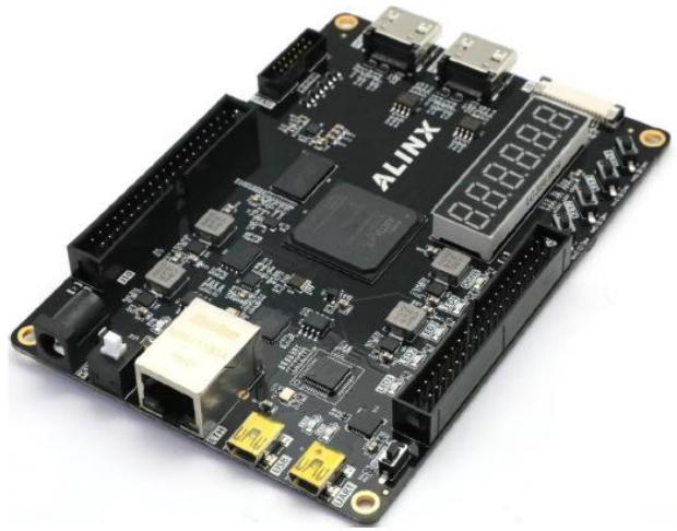 该实验项目中需要用到 FPGA 开发板,型号为 AX7035,FPGA 芯片为 Xilinx 公司 ARTIX-7 系列的 XC7A35T-2FGG484I。设计工具软件使用的是 Vivado(2019.1)。