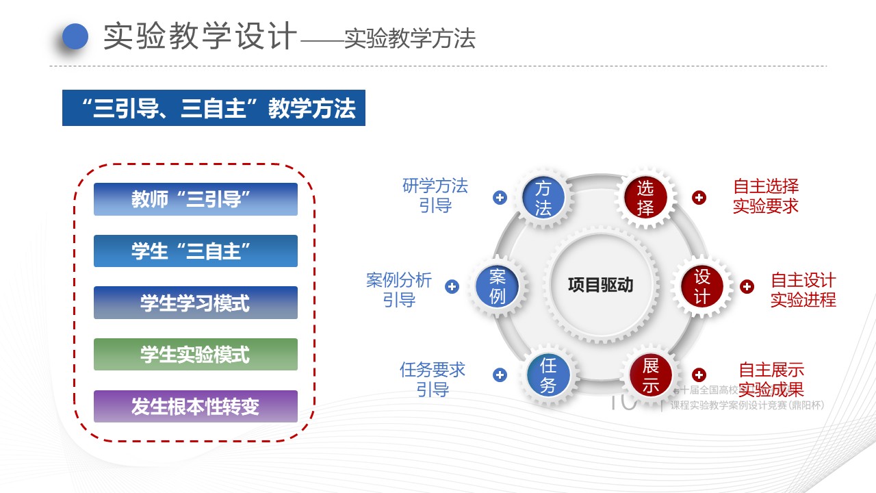 采用翻转实验课堂模式,对课前征集的实验难点进行答疑和实验操作演示,引导学生发现共性问题,弥补漏洞;在课堂上交叉进行实验方案讨论和实验设计,通过教学的启迪和大量有创意的实验内容训练,能动地激发学生创新意识,培养自主创新能力;使学生在实验理论、实践能力和创新精神三方面取得同步收获。