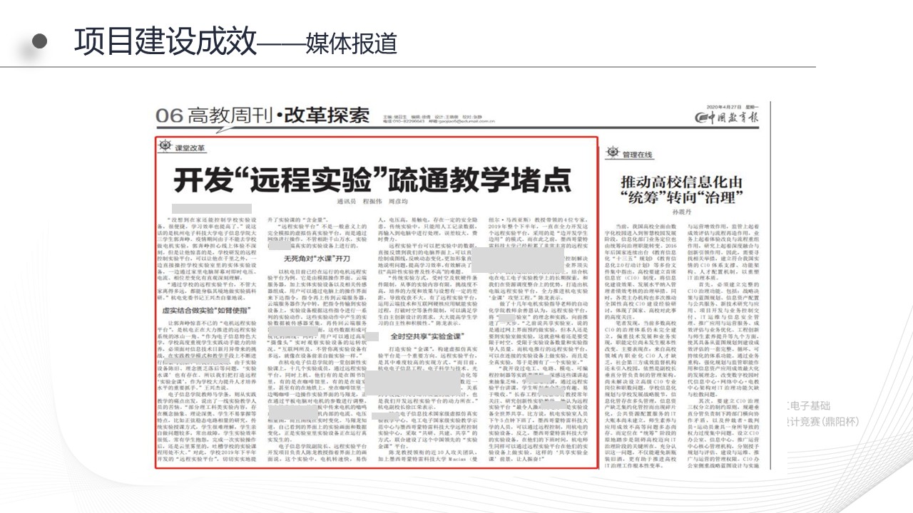 2)实验教学项目依托远程实境实验平台,构建跨越时间空间以及资源共享的实验教学环境;满足高阶性和泛在化实验教学需要。
